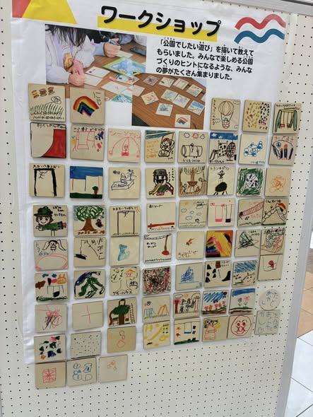 また、ワークショップでは「こんな公園・遊具で遊びたい」という子どもたちの声を集めており、素敵なアイデアが数多く展示されていました。