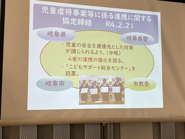 その後、子ども・若者総合支援センター「エールぎふ」の取り組みを伺いました。エールは、県、県警、市、市教育委員会と連携し、発達面の課題、児童虐待相談、教育相談など20歳まで切れ目のない支援を継続できるように環境を整えた取り組みです。医師、心理職、教員、社会福祉分野に精通した人材が同建物内で連携されており、相談を受ける側にとっては安心できる体制にしたいとの強い思いを感じました。