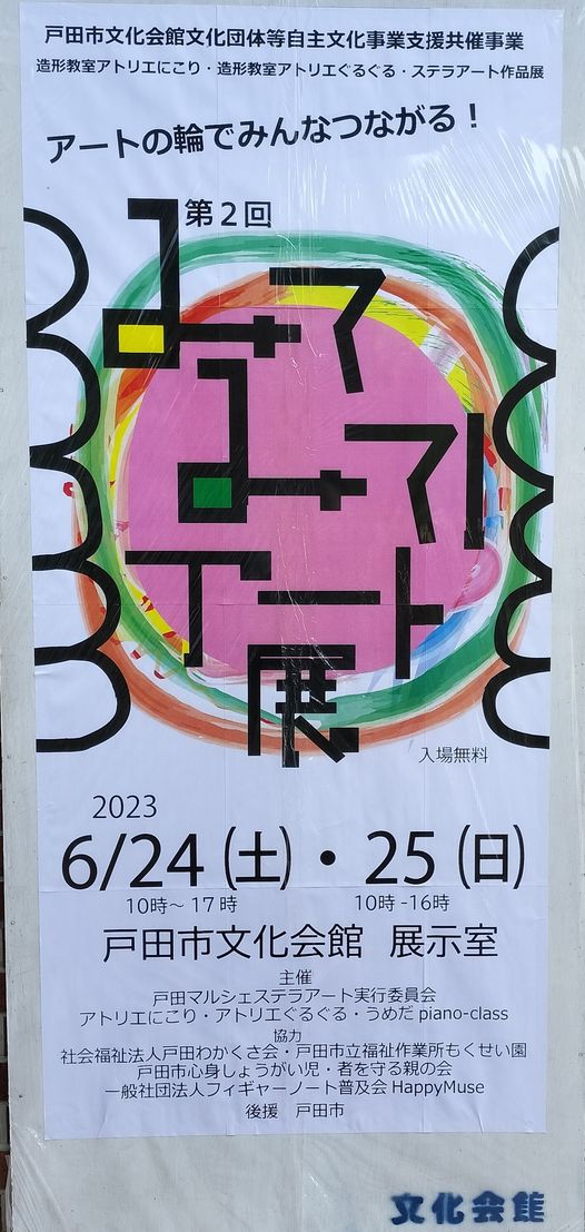 本日は早朝からジョギング、地域のラジオ体操に参加、諸々予定を済ませてから戸田市文化会館で行われている「みてみてアート展」を鑑賞してきました。ゆうゆうで働いている私の親戚が描いたアートもありました。本日は16時まで開催して