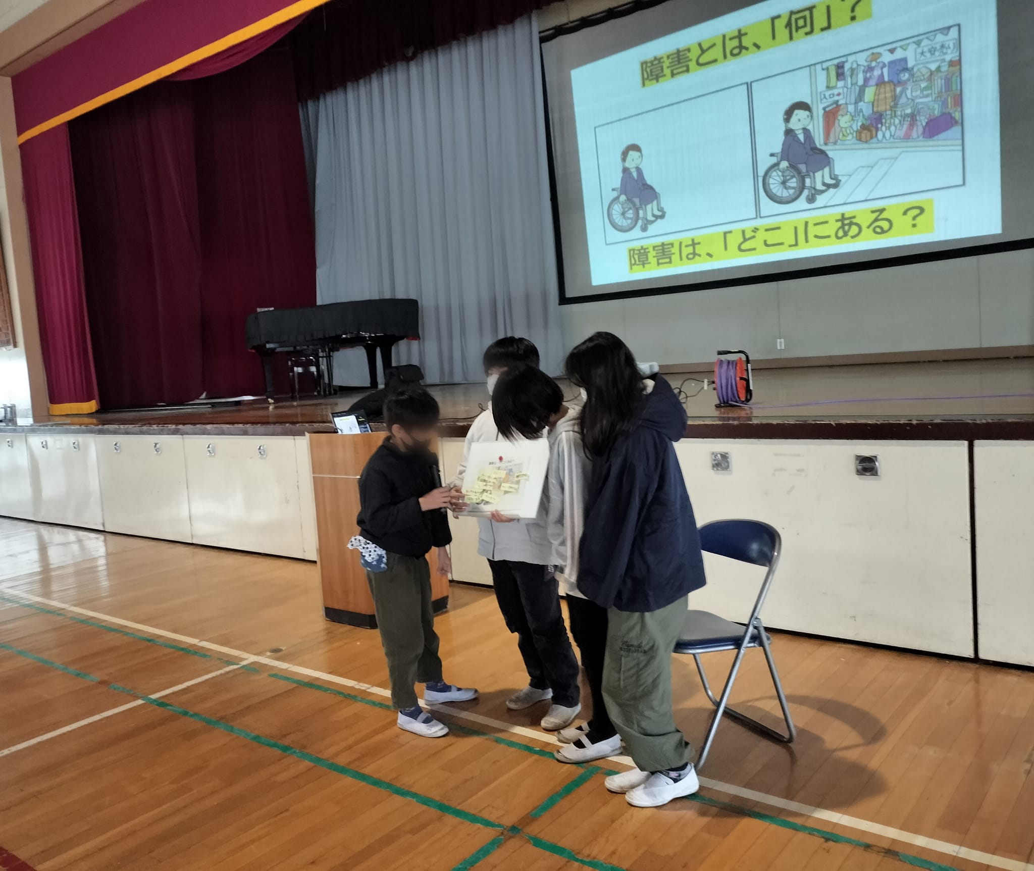 1月31日は午前・午後と2回に分け、新渡戸文化小学校5年生対象に当事者の障害者が講師役となり、参加者と対話することで、知識よりも「気付き」を促す、障害平等研修(DET)を実施しました。 個性豊かな子ども達が多く、グループ