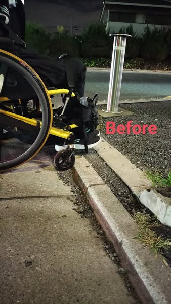 下笹目バスターミナルは、発着場として多くの方に利用されています。9月頃に車椅子ユーザーから、単独でバス乗降場までたどりつけないとのご意見をいただき、市担当課職員と共に現地確認をしました。 昨年末に段差を解消するために、