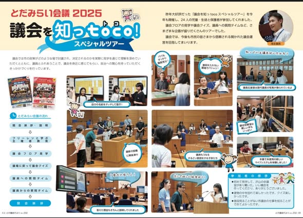 11月1日に「とだ議会だより」が発行されました。議会だよりは年4回発行しており、編集は議会広報委員会が担当しています。今回は、夏に開催した 「議会を知っとこツアー」 を特集として掲載しています!このツアーには、市内の児童